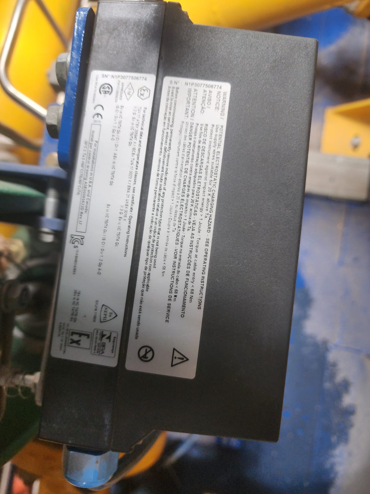 a man wearing a hard hat and headphones standing next to a machine